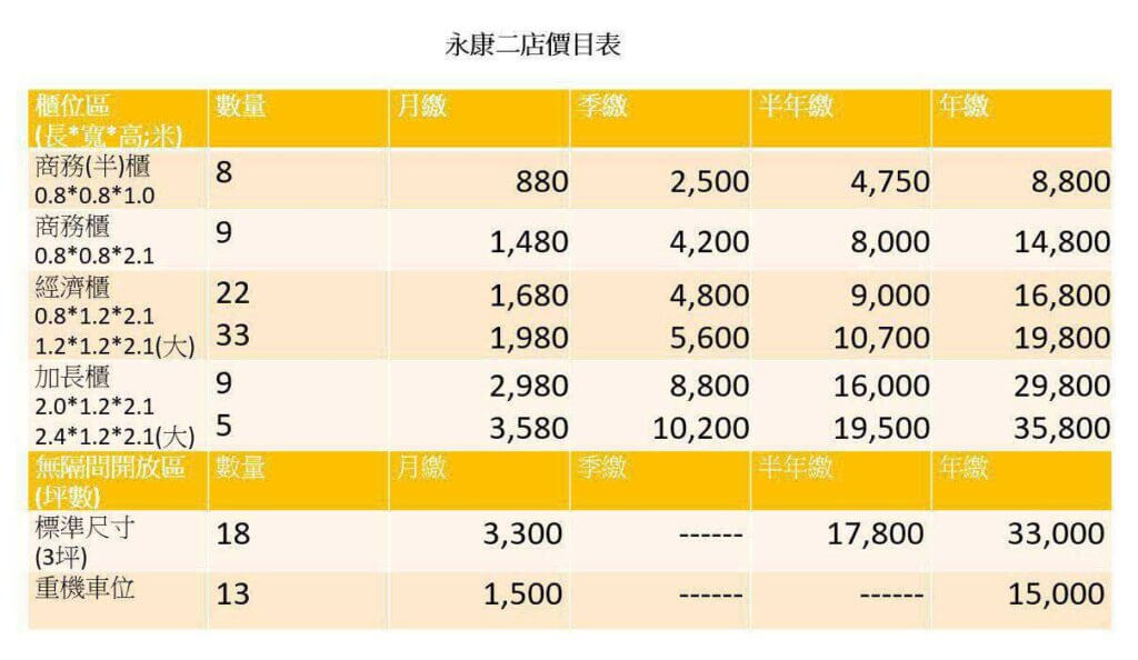 在台灣【自助倉儲出租】的價格範圍落在 每月500元至3000元上下不等,依需求不同而彈性選擇。